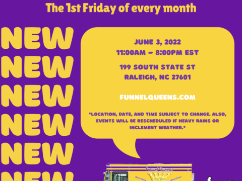 The Funnel Queens will be parked at Funnel Queens First Fridays near downtown Raleigh on June 3rd! Follow the yellow truck! FunnelQueens.com. …